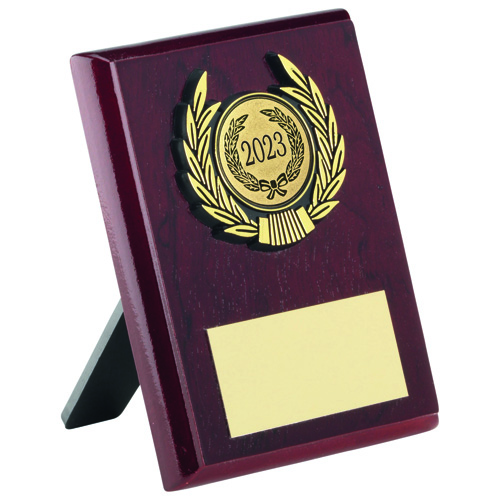 ROSEWOOD PLAQUE AND GOLD TRIM ASSEMBLED TROPHY (1in CENTRE) – 4in